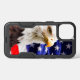 A portrait of a fierce American bald eagle is pictured in front of the star spangled banner on this patriotic case. At the bottom is your name or other custom text in black. If you prefer, you may remove the text by clearing the field.