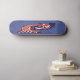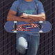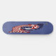 A silver eagle at the head of the stars and stripes of the flag of the USA flowing and whirling around like a tornado in the center of the deck. The smooth flowing circular distortion over a blue tiled background gives the impression of both speed and skill, what every skateboarder wants from his or her deck.