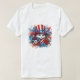 The shirt is good quality and fits just fine, but the colors of the printing are not as bright as in the sample photo. Not the best. The colors are a lot brighter in the sample photo; when I received the shirt they appeared faded. The red looks a little more pink and the blue is a lot lighter. N.B. I did not wash the shirt yet.