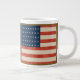 For the thirsty and the free! On each side of this jumbo mug is a stylized version of the flag of the United States of American (artistic license taken on number of stars). Between them, is a deep navy blue banner w/ the word "FREEDOM" running down it vertically. Coordinates with HoMeArts "American Flag" Series of dishes, table linens, clocks & more!
