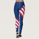 These patriotic leggings are printed with a diagonal American Flag on a blue background