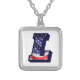 American Flag Monogram Letter L Silver Plated Necklace