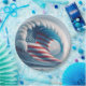 A massive wave with the design of the American flag is rolling through the ocean