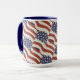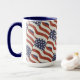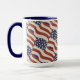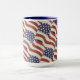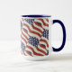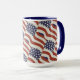 Celebrate your patriotic side while sipping your coffee or tea out of this generous 15 oz mug that features a decorative repeating pattern of American flags in red white and blue.