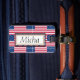 A modern American flag pattern design in red, white, and blue stars and stripes with a matching nameplate to add your name, initials, or info to.