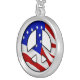 Red WHite and BLue US Flag unfurling in this peace sign silver necklace.