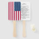 Festive handheld fans with a U.S. flag front and customizable back keep your guests cool while making sure everyone as access the National Anthem lyrics or other event related information for Anthem singing, patriotic ceremonies, concerts, school events, weddings, parades, rallies, or promotions. You can also choose to replace the text on the back with hymn lyrics, event program, or a custom message.