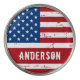 USA American Flag golf ball marker in a distressed worn design. Show your American pride and add a fun game to your 4th of July party or give a special gift with this USA American Flag golf ball marker in a distressed worn grunge design. This united states of america flag ggolf ball marker design with stars and stripes in red white and blue is perfect for fourth of July parties, Memorial day party games, family reunions, military graduation or retirement gifts and patriotic celebrations. Personalize this monogrammed american flag golf ball marker with name.