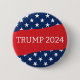 This Donald Trump 2024 election campaign pin features a patriotic American flag design with red, white, and blue colors. The text "Trump" and the 2024 election year are printed in a bold white font over a republican red background. A banner of stars over a navy blue background is spread across the top and bottom portions.