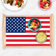 Patriotic serving tray features an American flag design with stars and stripes in red, white, and navy blue colors.