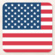 Patriotic drink coaster features an American flag design with stars and stripes in red, white, and navy blue colors.