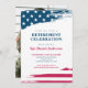 Plan a retirement party for your patriot. This design features a painted red, white and blue American Flag which is perfect for military, police, firemen or first responders who are retiring. This design can also be edited for Military Going Away and Welcome Home parties.