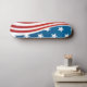 This skateboard has the American flag pictured on it.