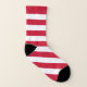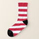 A patriotic American flag inspired design which a stars pattern on one sock and red and white stripes pattern on the other sock. Mismatched socks that are perfect for 4th of July celebrations.