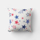 Add a touch of Americana to your home decor with this stylish throw pillow. This all-over print features a pattern of red, white, and blue stars on a crisp white background.