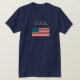A rustic, muted red, cream and blue American Flag gives this men's t-shirt vintage, patriotic style. Wear this American flag t-shirt for Memorial Day, Independence Day, Fourth of July, July 4th, Labor Day, Veteran's Day, or any day!