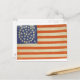 Although this is a printed parade flag, the global design with two satellites of this 38-star flag demonstrates how manufacturers -- both professional and amateur -- would leave space to add stars. Time has worn away some of the ink on the original flag.