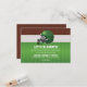 Brown, green, and white American football Bar Mitzvah reception insert card. This American football Bar Mitzvah reception card design features a brown leather dimpled background that looks like the leather of a football that is paired with a white dimpled leather stripe and a green grass looking football field. This green, brown and white football background is paired with a sports style accent font and a football helmet that is green and black. This football Bar Mitzvah reception party or celebration card would work well for a NFL football or Super Bowl themed Bar Mitzvah. This football sports Bar Mitzvah reception enclosure card could work for any season and is a great choice for a boy who loves American football.