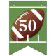 Green background for the football field with white yard line markings and a brown football on one which represents the 50 yard line. This bunting says "Concession Stand" for your American football parties.