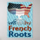 A map of the USA with the flags of France and America, and the text 'French Roots' underneath. Great for Americans proud of their French ancestry and for ex-pats.