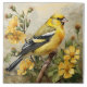 This ceramic tile features a realistic portrait of a yellow and black American Goldfinch bird. The design incorporating flower and nature motifs to create a harmonious scene.