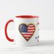 This customizable patriotic mug featuring a heart shaped American flag makes the perfect souvenir for anyone who loves the red, white and blue of the Old Glory. Replace all the editable texts with your own and turn it today into a truly unique gift for someone who values and respects the stars and stripes!