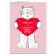 A cartoon of a large fluffy white cat holding a big red heart that has written on it 'February is American Heart Month'.