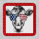 One hip cow... black and white illustration of cow face with aviator style sunglasses and USA flag lenses. Great apparel for Memorial Day, Independence Day, Labor Day, Election Day...or just any day of the week ending in y.