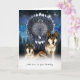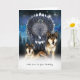 An American Indian Wolf Style Greeting Card forBirthay, Blended Wolves and with the moon and blended sky in the background, and a feathered dream catcher