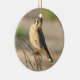 This small falcon is all decked out in his bright colors. The male American Kestral has black stripes on the sides of his face, blue-gray wings, and a rusty-colored back. This falcon will look great on your Christmas tree or as a decoration all year long.