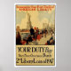 Vintage World War I poster "Remember Your First Thrill of American Victory," encouraging recent immigrants to buy war bonds to support the 2nd Liberty Loan of 1917.