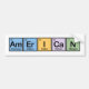 The word American is spelled using elements from the periodic table. A great gift idea for patriotic Americans - especially if they also have an interest in science or chemistry! Americium + Erbium + Iodine + Calcium + Nitrogen = AmErICaN