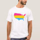 Basic T-Shirt with pansexuality rainbow stripes of pink, yellow and blue on map of The USA (United States of America), rainbow pride design, by pinkbrickroad