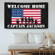 A simple military 'WELCOME HOME' banner, featuring, the american flag, the word "congratulations", soldiers in silhouette and the name of the soldier. All textstyle, size and color can be changed by clicking on the customize further link after personalizing.
