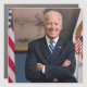 The photograph captures a moment in time before president elect Joe Biden appointed office of Vice President of the United States. Sunlight streams through a window, casting a warm glow on the figure of an Biden standing confidently in the center of the frame. His arms are crossed, a gesture that suggests both authority and a hint of casual ease. --- Mr. Biden is dressed impeccably in a dark suit, the crisp fabric contrasting sharply with the clean lines of his white shirt. A blue and white striped tie adds a touch of personality to the ensemble. --- A glimpse of patriotism is evident in the background. An American flag stands proudly on a pole to the man's right, its vibrant colors a subtle counterpoint to the cool blue of the wall behind him. A closer look reveals a painting hanging on the wall, adding a touch of personal flair to the professional atmosphere. --- Soon to be Vice President Biden is the focal point of the image. His short white hair frames a kind face, etched with the lines of a life well-lived. A warm smile plays on his lips, conveying a sense of confidence, wisdom, and perhaps a hint of amusement.