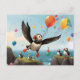 American puffins cliff water balloons postcard