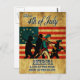 4th of July card featuring American revolution soldier marching with betsy ross flag vintage retro style