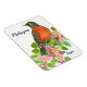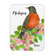 A "Michigan Love" magnet with an American Robin on a branch with blooming apple blossom flowers drawn with ink and painted with watercolor. Inspired by the state bird and state flower of Michigan. You can edit or remove the text to fit your needs.