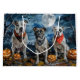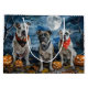 Unleash the spooky spirit with this eerie Halloween design featuring a pack of dogs under a dark, moonlit sky, surrounded by flying bats and glowing pumpkins. Perfect for those who love a touch of frightful fun with their furry friends!