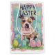 A lively Easter scene featuring an adorable dog amidst a collection of vibrant Easter eggs. The playful canine adds charm to the festive atmosphere, surrounded by an array of colorful eggs adorned with whimsical designs.