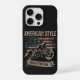 Bold American-style biker artwork featuring a powerful chopper motorcycle set against a distressed USA flag, symbolizing freedom, rebellion, and the spirit of the open road.