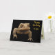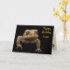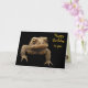 A grumpy looking American Toad (Bufo americanus) is looking out at you from this birthday card. This small amphibian is brown with black, gold olive green and orange coloration. His warts distinguish him from his frog neighbors. Although hatched in the water of ponds, rivers, lakes or streams, the tadpoles soon move to land where the toads live their adult lives. His startling call is a long screech. He looks quite fierce but is actually a gentle little guy who eat lots of garden pests including insects and slugs. The text reads: Happy Birthday to you. From Prince Charming. It can be customized or removed.
