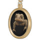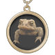 A grumpy looking American Toad (Bufo americanus) is looking out at you from this necklace. This small amphibian is brown with black, gold olive green and orange coloration. His warts distinguish him from his frog neighbors. Although hatched in the water of ponds, rivers, lakes or streams, the tadpoles soon move to land where the toads live their adult lives. His startling call is a long screech. He looks quite fierce but is actually a gentle little guy who eat lots of garden pests including insects and slugs.