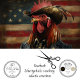 In the heart of the American West, there lived a rooster named Ruster, known far and wide for his unwavering patriotism and unique cowboy style. Ruster wasn’t just any rooster; he wore a brown cowboy hat adorned with a feather, and his vibrant feathers in shades of red, orange, and black made him stand out in any crowd.