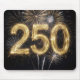 The golden number 250 is illuminated by bright fireworks that explode in various colors against a dark sky, creating a festive atmosphere