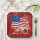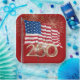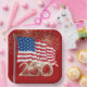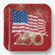 Gold sparklers on a red background and the American flag for America's 250th birthday party.