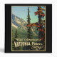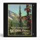 "Visit America's National Parks Today!" is what this wonderful vintage scenic design says. A panoramic view of mountains and forest make this retro design a winner for the great outdoors.