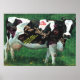 Digital enhancement of an original painting depicting a Holstein cow wearing the kind of graffiti a cow would write if she could. This is one of a series of visual cow puns by the artist.