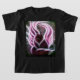 T-shirt featuring Amethyst Fairy Cat by wildlife and fantasy artist Michaeline McDonald of a fluffy black cat with glowing pink wings against a black starry background.