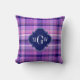 Amethyst Pink Navy Wht Preppy Madras Monogram Throw Pillow